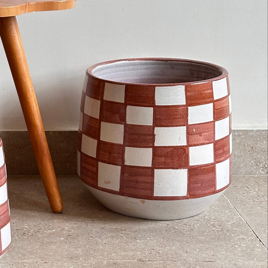 Monstera Deliciosa in Checkered Ceramic Pot