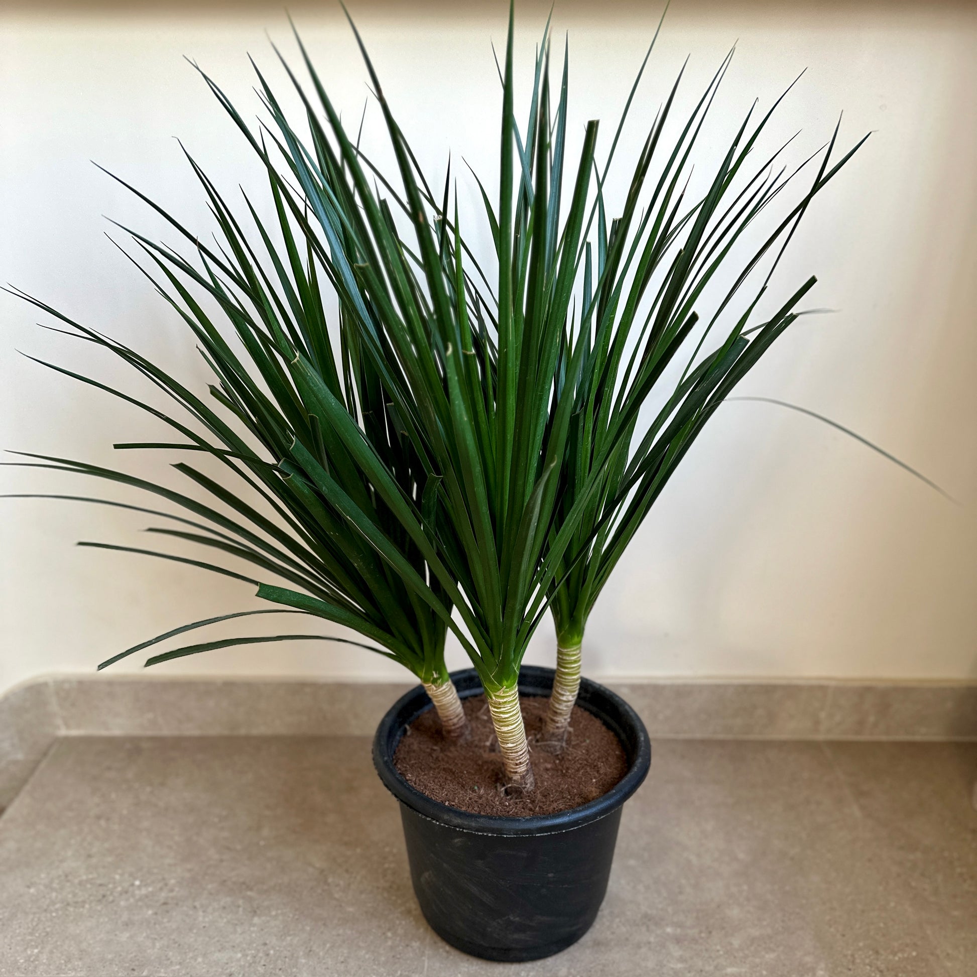 tall, airy, and naturally elegant. he grows slim trunks topped with long, soft, sword-like leaves that give him a calm tropical look. he's low fuss, adaptable, and perfect for bright corners.